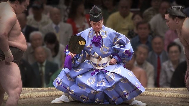 In the very early history of sumo, there were no referees and the person tasked with making a ruling over a match would be the emperor of Japan. Since the 16th century though the gyoji, or referee, has filled that vital role and maintained the rules within a sumo match. They also have probably the best uniform for a job ever.