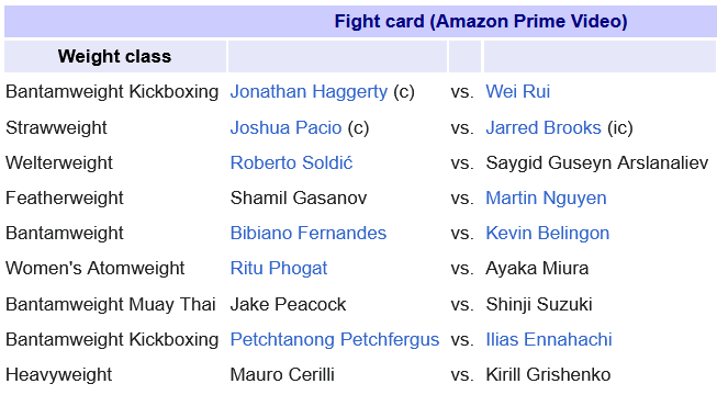ONE Bantamweight (145 lbs) Kickboxing World Championship: Jonathan Haggerty(c) (1-0) vs. Rui Wei (12-2)