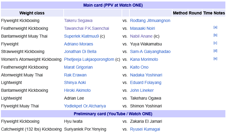 Overall, this card is pretty stacked. Especially given it’s a ONE card being held outside of South East Asia. With so many title fights, big names, and career arcs that are intriguing it is shaping up to be a great card. The showdown between Takeru and Rodtang is easily going to be the biggest highlight and focus of the event, but for me I’m really hoping that Nabil Anane can take the W and become not only ONE’s youngest champion but the youngest combat sports champion in any of the major promotions. Just ignore the fact its not MMA. Because why would ONE have a strong MMA scene?