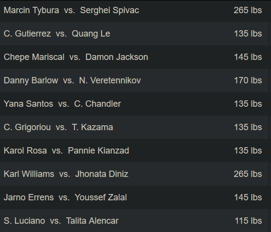 But that road ended extremely poorly. The last time we saw Serghei was September of 2023, where he fought Ciryl Gane, inexplicably refused to wrestle, and got the crap kicked out of him to the tune of a 10:1 striking ratio. But it was only the second-worst loss of Spivac's 2020s--with the first being a first-round knockout loss to, once again, Tom goddamn Aspinall. Like Tybura, Spivac is good, but he's made it clear he simply does not currently belong in title contention.