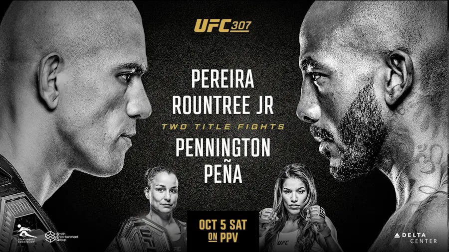 You cannot tell me you cannot see the path to righteousness here. A champion the UFC has invested years of marketing into, whom they are already grooming for not one but two different champion vs champion bouts, whom they are adamantly keeping away from his top contender, gets a completely obligatory afterthought of a fight against an enormously undeserving fighter who just so happens to also punch like a Mack Truck? There's absolutely a comedy-fueled outcome in which Rountree sneaks a big left hand under Pereira's guard and shuts his lights out and just ruins everything.