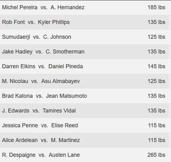 MIDDLEWEIGHT: Anthony Hernandez (12-2 (1), #13) vs Michel Pereira (31-11 (2), #14)
