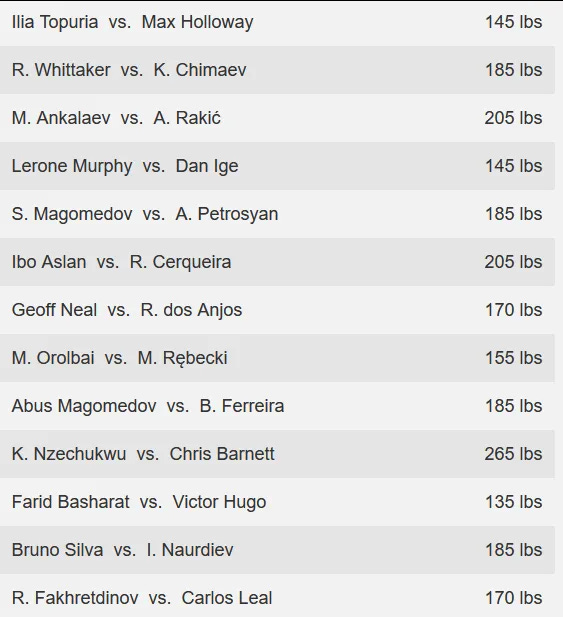 MIDDLEWEIGHT: Abus Magomedov (26-6-1) vs Brunno Ferreira (12-1)