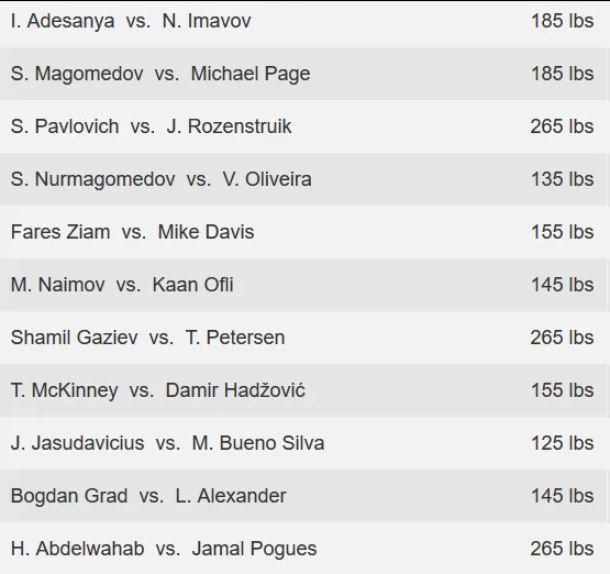 MIDDLEWEIGHT: Israel Adesanya (24-4, #2) vs Nassourdine Imavov (15-4 (1), #5)