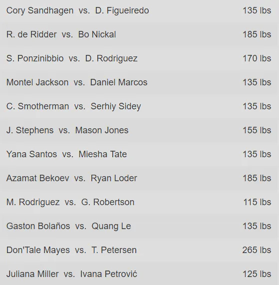 So it's real nice that this is also just a really good fucking fight. Sandhagen's an excellent all-around fighter who struggles with pressure, which is Deiveson's best skill. He's a terrifying pocket puncher who's still adjusting to the range and power advantages bigger Bantamweights have, and Sandhagen's the biggest. Cory keeping Figueiredo at the end of his jab and threatening him with grappling is just as likely as Figgy getting under his arms and erasing his liver and intestines with hooks.