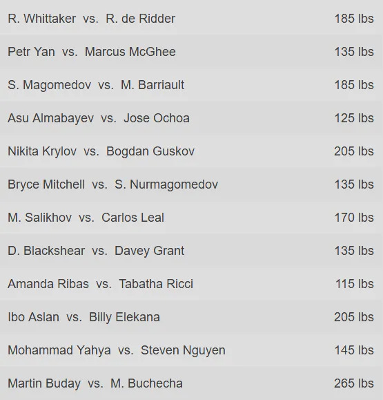 We now have a card that includes Robert Whittaker being offered up to the young, Petr Yan fighting ten full rungs down the ladder and a top ten women's match buried in the prelims under highlighted appearances by Shara Magomedov and Bryce Mitchell.