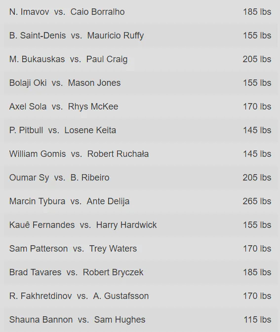 MIDDLEWEIGHT: Nassourdine Imavov (16-4 (1), #2) vs Caio Borralho (17-1 (1), #7)
