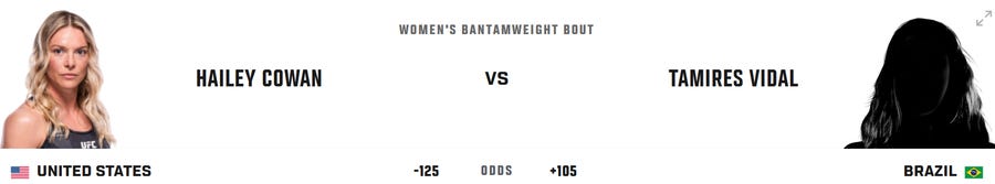 WOMEN'S BANTAMWEIGHT: Tamires Vidal (7-1) vs Hailey Cowan (7-2)