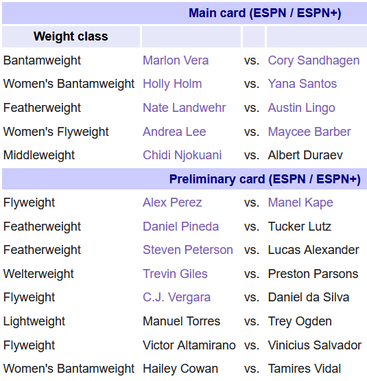 BANTAMWEIGHT: Marlon Vera (21-7-1, #3) vs Cory Sandhagen (15-4, #5)