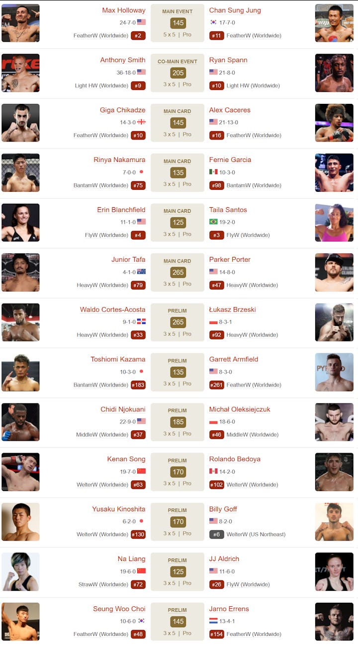 FEATHERWEIGHT: Max Holloway (24-7, #1) vs Chan Sung Jung (17-7, #8)