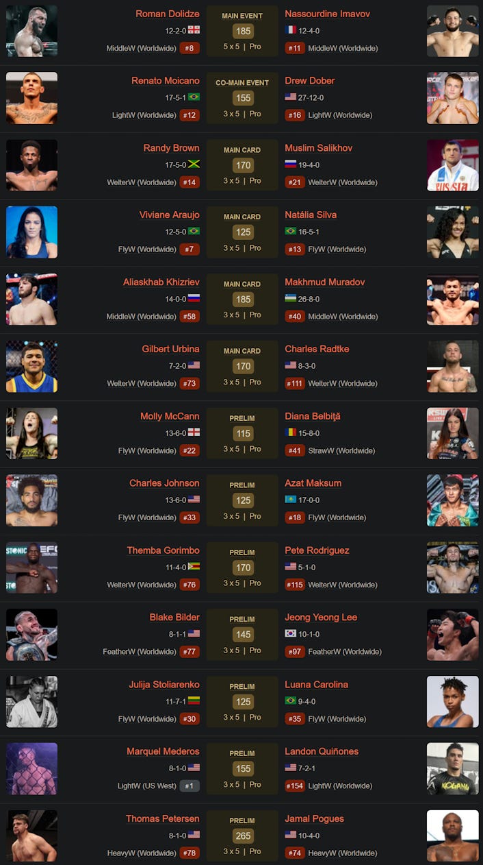 MIDDLEWEIGHT: Roman Dolidze (12-2, #8) vs Nassourdine Imavov (12-4 (1), #11)