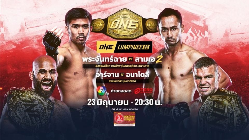 The quarterly BIG ONE is here. 13 weeks ago, ONE put a Regian Eersel title defense on Friday Fights, and this week there’s an interim Muay Thai title fight as well as a Cursed Heavyweight MMA Title Unification Fight.