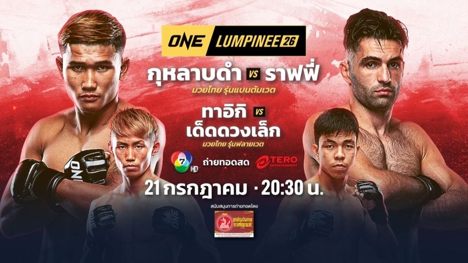 In the featured fight of the first half, #4 ranked flyweight fighter Taiki “Silent Sniper” Naito makes his Friday Fights and Lumpinee Stadium debut, with an overall ONE record of 7-2. He’s coming off of a win over Amir Naseri last October, and his two losses are respectable ones to current bantamweight Muay Thai champion Jonathan Haggerty and current flyweight kickboxing champion Superlek. His opponent is Dedduanglek, who is 2-0 at Friday Fights and is coming off of a decision victory over Shakhriyor Jurayev in April.