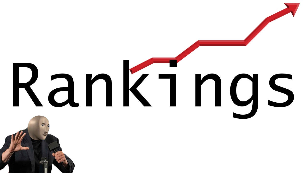 However, we are bringing back our rankings with an adjusted approach. Previously, we aimed for monthly rankings and tried to provide a deep analysis. This proved untenable, and we are now shifting to quarterly rankings with the same amount of analysis and discussion as before.