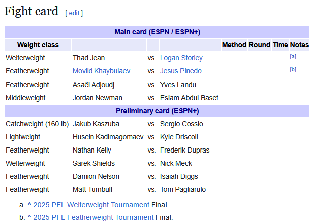 Here we are, friends. The 2025 PFL world tournament championship finals, welterweight division. Thad Jean, man of punch-kick, taking on Logan Storley, wrestling devil of the frozen midwest. Thad got here by knocking out Mukhamed Berkhamov in the first round of the tournament, and took Jason Jackson to a split decision in the semi-finals. Logan Storley won by decision against Joseph Luciano and the same against Masayuki Kikuiri.