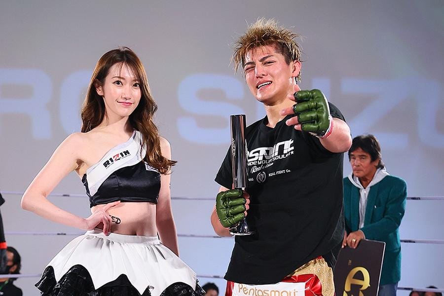Chihiro Suzuki has had a very fortunate year. Suzuki rose to Rizin's notice not through MMA, but after winning Japan's KNOCK OUT Super Lightweight Kickboxing championship. He made his Rizin debut six months later--and got knocked out in twenty seconds. He spent the next two and a half years simultaneously rounding out his MMA game and annually defending his kickboxing gold, and by 2023, he was one of Rizin's top Featherweight contenders, more than ready for his shot at Kleber Koike Erbst's Rizin championship. And--he got armbarred in three minutes. However, hilariously enough, Erbst lost his belt on the scale after missing weight, meaning the title was vacant and the fight, by Rizin rules, was a No Contest, so Suzuki didn't even technically lose. He then proceeded to get the biggest break of his career. At Bellator x Rizin 2 on July 30th, 2023, despite having just lost a five-round fight to Sergio Pettis a month prior, Patrício Pitbull was thrown onto the card against Suzuki on four days' notice--and Suzuki not only beat him, he became the first person to ever knock out Bellator's GOAT. Rizin immediately booked Suzuki in against new champion Vugar Keramov for their debut in Keramov's home country of Azerbaijan, and Keramov looked poised and powerful and was in the process of ragdolling Suzuki like he does everyone else--and Suzuki caught him with an upkick on the jaw and punched him the rest of the way out from his goddamn back. Chihiro Suzuki, you are Rizin's new star. Hold onto it as long as you can and pray they don't book a Kleber rematch. He’ll make his first title defense against Masanori Kanehara on May 6.