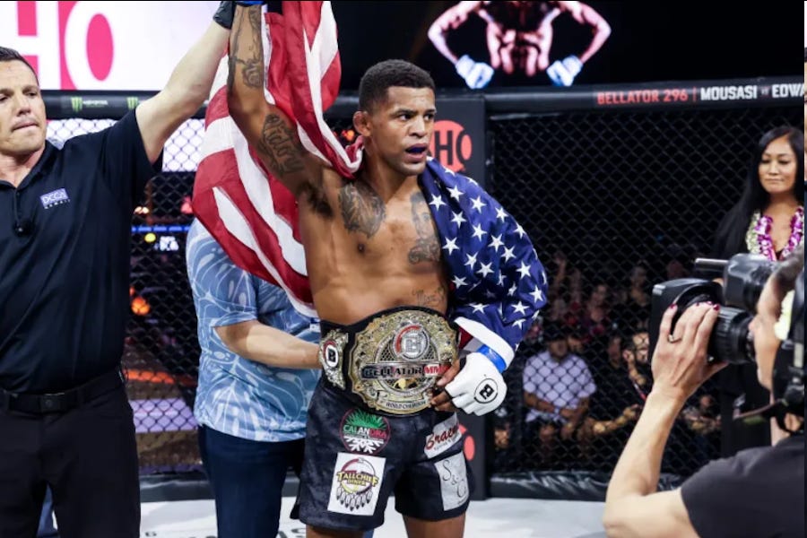 There's an old combat sports tradition whereby a champion isn't really a champion until they defend their title. Gegard Mousasi has been established as the best middleweight outside the UFC that, despite the one-sided nature of their fight, Johnny Eblen's victory over him was treated as an aberration rather than the passing of a torch. It didn't matter that Eblen was undefeated, widely considered one of the absolute best by his cohort at American Top Team or that he'd dropped Mousasi on his face with his bare hands, the world needed verification. On February 4th at Bellator 290, they got it. Fedor Emelianenko's team was intending to pull one big, beautiful night of success out of the ether for their leader's retirement fight, but it was not to be: Vadim Nemkov had to pull out of the card thanks to an injury, Fedor himself was crushed for the second time by heavyweight champion Ryan Bader, and middleweight hopeful Anatoly Tokov was competitive for the first couple of rounds but was subsequently washed out by Eblen's overwhelming assault. Johnny Eblen is a defending champion now, and as things always seem to go, the conversation changed overnight from his being overrated to his being better than everyone in the UFC. This mindset only grew again after Bellator 299 on September 23rd, as Eblen faced Fabian Edwards, knocked him out in the third round, and nearly got into a post-fight brawl with his brother, UFC champion Leon Edwards. Eblen admits he has no idea what his future is or if Bellator will still be around, but he's considering a move to light-heavyweight with Vadim Nemkov leaving the division wide open. Eblen had a scare against Impa Kasanganay but ultimately won his PFL vs Bellator bout.