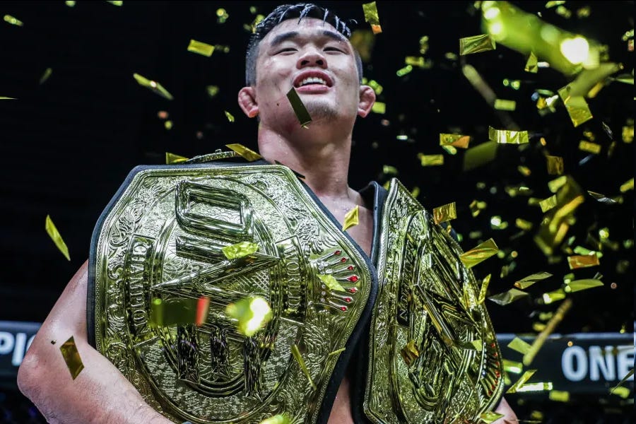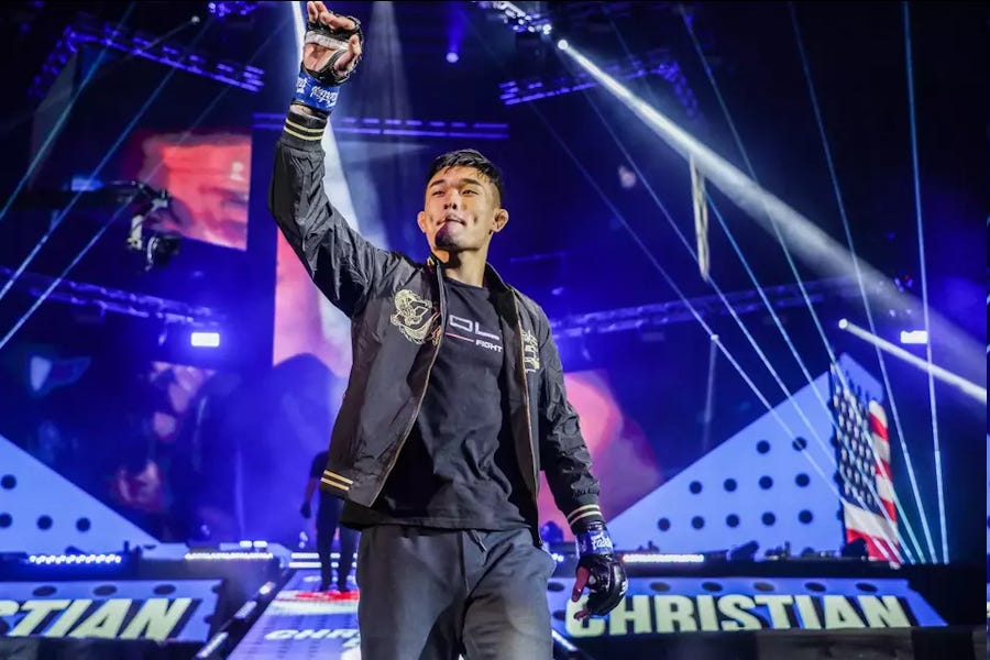 It took three tries, but by god, Chatri gets what Chatri wants. Christian Lee, the male half of the first family of ONE Championship and its homegrown golden boy, was very mad about losing his lightweight championship in a controversial decision to Ok Rae Yoon last year. He demanded the decision be reviewed and overturned and his championship reinstated. Unsurprisingly: This did not happen. After months of complaining and just shy of a year of waiting, the two had their long-awaited rematch and Lee left nothing to chance, knocking Yoon out in six minutes to reclaim his belt. Having finally retrieved his title, Lee, being a responsible champion, proceeded to immediately challenge ONE'S 185-pound champion, Kiamrian Abbasov, for his title, a move that was definitely in no way influenced by ONE's repeated attempts to get his sister Angela Lee double-champion status. Fortunately for Christian, Abbasov horribly botched his weight cut: He came in overweight, lost his title on the scale, and was visibly depleted in the fight. Which is particularly lucky, because Abbasov beat Lee senseless in the first round to the point that a standing TKO would not have been an unreasonable stoppage. But whether from his failed weight cut or simply from punching himself out, Abbasov was exhausted by the second round, and Lee mounted a gutsy comeback and ultimately stopped him with ground-and-pound in the fourth round. After three attempts, ONE has succeeded in getting two belts on a Lee. Unfortunately, it was followed by tragedy. After the passing of his younger sister Victoria, Christian took the whole of the year to, understandably, grieve. ONE planned his comeback for February of 2024, but, y'know, that clearly did not happen.