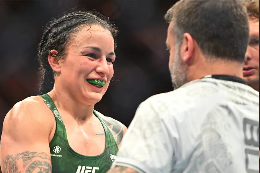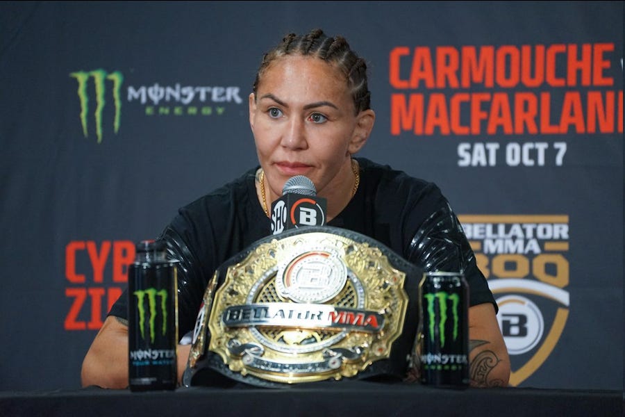 Yup. It's 2024 and Cris Cyborg is still out there. For those who don't know, Cris Cyborg was the canonical women's featherweight fighter, a Muay Thai wrecking machine who didn't just beat but brutalized essentially all of her opponents, including ex-Star Wars Gina Carano, and her popularity as a destroyer of humans is the only real reason women's featherweight even exists as a division, to the point that the UFC added it when she was the only actual fighter at the weight class they employed. She was 20-1 (1) when she passed the torch to Amanda Nunes, who slew her in just fifty-one seconds. She took one more fight in the UFC to complete her contract, but left for Bellator almost immediately afterward with uncharacteristic cooperation from the UFC itself--after all, they'd gotten what they wanted out of her. Her first Bellator fight was a one-sided destruction of their featherweight champion, and she's defended it three times since. At this point in Cyborg's career the problem isn't her or her fighting or her age, but simply that there's no one in Bellator for her to fight--after just five fights she's already hitting rematches, having just recorded her second one-sided bludgeoning of a very game but outmatched Arlene Blencowe. Cyborg decided her next fight would be a boxing match, and on September 25 she faced Simone da Silva, a jobber to the stars coming off twelve straight losses who had been knocked out just one month prior. Undeterred, she had her second boxing match on the undercard of December 10th’s Crawford/Avanesyan card, taking a unanimous decision over Gabrielle “Gabanator” Holloway, who is 6-6 in MMA and 0-3 in boxing. After a year and a half of inactivity, Cris Cyborg returned to MMA to defend her title against Cat Zingano at Bellator 300 on October 7th. It lasted four minutes. Cyborg has been open and public about her lack of communication with PFL, and despite being one of Bellator's biggest names, those fences do not appear to be mending.