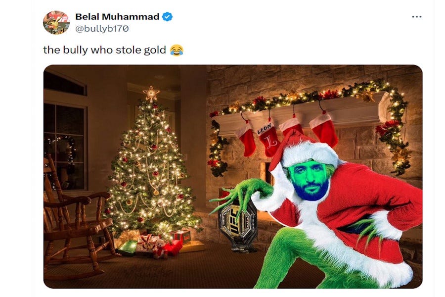 It took everything for Belal Muhammad to finally get here. Being a lifelong wrestler and shooting as many doubles as you do big right hands does not make you a marketing darling, and when Belal made his UFC debut in 2016 as an undefeated wrestling stylist and immediately went 1-2 he was quickly lost in the background radiation of the sport. The first sparks of momentum were visible after toiling away in mostly preliminary fights en route to a four-fight winning streak, but then Geoff Neal beat him and everyone wrote him off altogether. Everyone except Belal Muhammad. Belal worked harder, trained better, doubled down on his style, and forced his way back into the rankings with another four victories. And then, for the first time, the UFC tried to use him. Their other problem child contender, Leon Edwards, was supposed to fight and be summarily derailed by Khamzat Chimaev, but for the third time, the fight was cancelled; Muhammad stepped in on short notice. The fight ended in a No Contest thanks to an eyepoke just eighteen seconds into the second round. Despite having decidedly not lost the fight, despite having done the UFC a favor by taking it in the first place, it would be five fights and almost three and a half years before he got the rematch he deserved. He hadn't beat anyone in contendership, so he dominated Stephen Thompson. He had an unavenged loss to Vicente Luque, so he beat him. He was too boring, so he knocked out the undefeated Sean Brady. He was pressed to take a fight against top contender Gilbert Burns with three weeks to prepare while nursing one barely-functional ankle. He did it and won. He hadn't been defeated in ten straight fights. And Colby Covington got his title shot. The UFC tried everything to keep Belal away from contention, to the point that Leon Edwards attests that he asked the UFC why they weren't offering him the Belal fight and the UFC replied that Belal just wasn't important enough. But, on a long enough timeframe, you run out of both options and excuses. On July 27, at the UFC's big British supershow on UFC 304, Belal finally got the shot he'd deserved for years, and he did not waste a second of it. After five grueling rounds, Belal took a wide, definitive decision, and with it, the recognition he's been chasing. He's the UFC Welterweight Champion of the World. And now he has to deal with a division that's suddenly looking very, very lively. Belal was scheduled to fight Shavkat Rakhmonov at UFC 310 on December 7, but a nasty bone infection in his toe has put him on the shelf, possibly until mid to late 2025 if treatment goes poorly. Shavkat and Ian Machado Garry will be fighting for the next crack at Belal when he returns.