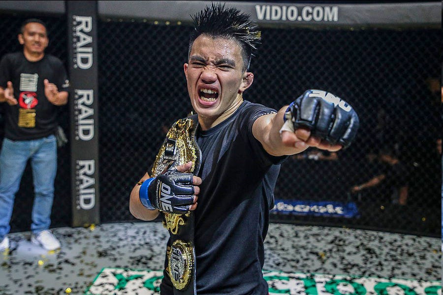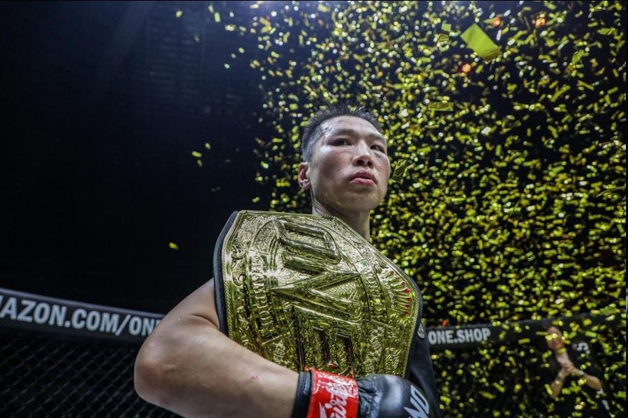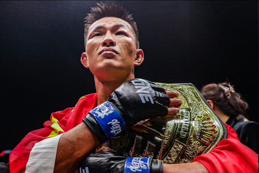 Tang Kai has been flying under the radar for some time, and in hindsight, that was clearly a mistake. He made his professional debut as a 20 year-old collegiate wrestler and won a rookie featherweight tournament in China's WBK (after investigating, we THINK it's World Battle Kings), but his stylistic limitations became apparent when he moved up to Kunlun Fight--and stopped fighting rookies. Dominant decision losses to ACA standout Bekhruz "Ong Bak" Zukurov and Road to UFC runner-up Asikeerbai Jinensibieke made Kai's weaknesses too apparent to ignore, and he made the tough call to commit to his dream, pack up his life, and move away from home to start training with real fight camps, most notably Shanghai's Dragon Gym and Phuket's legendary Tiger Muay Thai. It's worked out quite well: He hasn't lost a fight in five years. Three knockout wins in China's Rebel FC got ONE's attention, and since debuting with the organization in 2019, Kai has soundly defeated everyone in his path. He claims his wrestling base makes him impossible to take down and he proves it by using it almost entirely defensively, vastly preferring to bludgeon his opponents on his feet. His fight against Thanh Le, while blistering and difficult, was proof: He evaded every takedown attempt, widely outstruck him, dropped him with punches and leg kicks alike, and took the belt he's held for two years. And then, absolutely nothing else happened. It took ONE almost a full year to book another match for Tang Kai, and it was just an instant rematch with Thanh Le with no fanfare, and it was delayed by eight full months thanks to an injury. So after more than a year and a half without a fight, Tang Kai finally fought Thanh Le again, and this time, he knocked him out in three rounds. Congratulations, Tang Kai: You are back at square one.