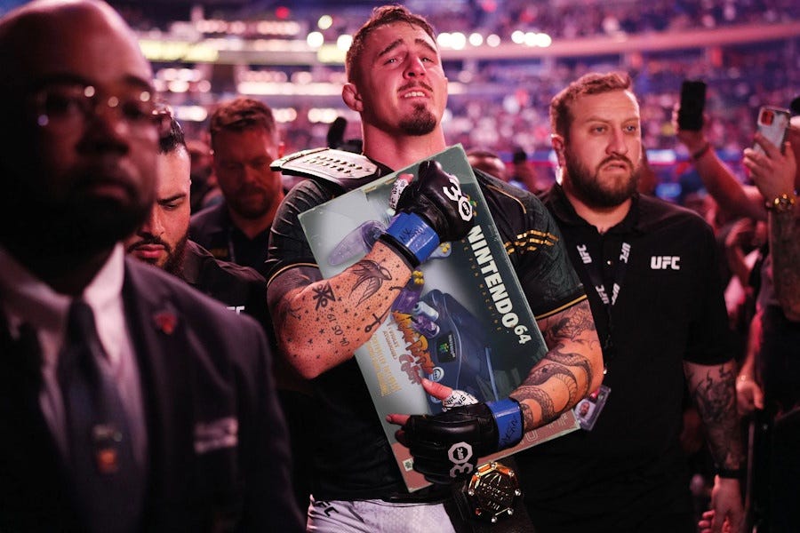 The UFC's Heavyweight division got itself into a weird spot in 2007. Randy Couture was the rightful, reigning, defending champion, but he and the UFC had a dispute that stretched out more than a year. The UFC couldn't strip him--it would have made it easier for him to get out of his contract--so they made an interim title. By the time Randy came back they had already made big plans for him and Brock Lesnar, but the interim title had gotten wrapped up in The Ultimate Fighter 8 (jesus christ) and it, too, had to be defended, meaning there were two championships being defended simultaneously: The Undisputed Championship, which was the 'real' belt despite being held by a guy trying to leave the company and contended for by someone with only two victories in the sport, and the Interim Championship, which was being fought over by the actual, legitimate top contenders. At UFC 295 on November 11th, 2023, Tom Aspinall, the rightful #4 contender, fought Sergei Pavlovich, the rightful #2 contender, for a new interim championship. And he won. On two weeks' notice! Aspinall's been one of the most promising heavyweight prospects in the world for years, his only loss in the UFC came from his knee tearing itself apart fifteen seconds into a fight, and he went toe-to-toe with one of the scariest punchers in the history of the sport and knocked him flat in just barely over a minute. He is, indisputably, the real deal. And now he gets to be the interim champion of a Heavyweight division in which the real champion, Jon Jones, is going to be out injured well into next year and, the UFC has made clear, will be returning to defend his title against Stipe Miocic, who by that time will have been on the shelf for 3+ years and will be going on 42. So congratulations, Tom. You're the real Heavyweight champion, and to prove it, you're defending your title before Jon Jones. Aspinall avenged his one UFC loss by blasting Curtis Blaydes out in a single round at UFC 304 on July 27. Will he get to reunify the title? Who goddamn knows.