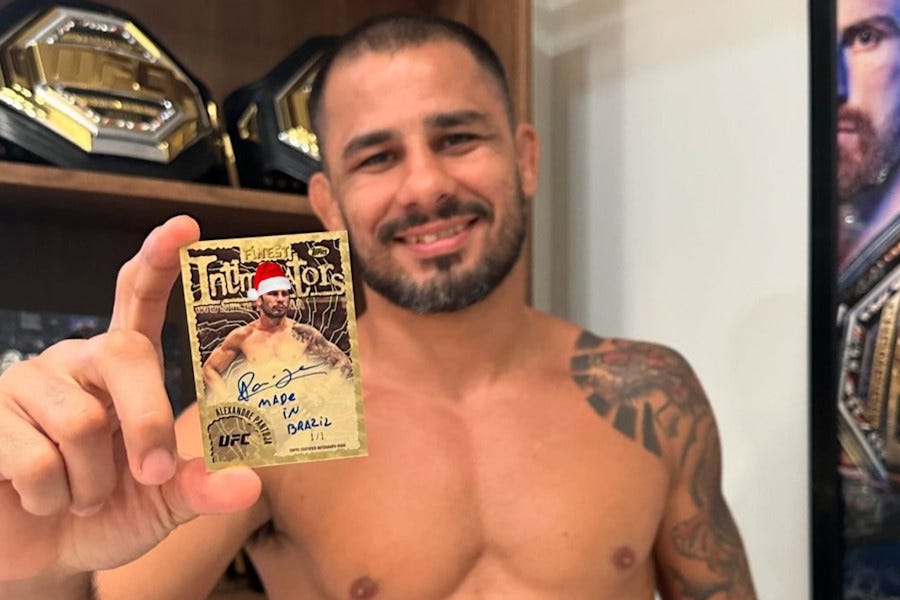 That evening brings us the final pay-per-view of the year, UFC 310: Pantoja vs Asakura. The UFC was planning a title doubleheader, but Belal Muhammad's injury scratched it; fortunately, it's a pretty fuckin' good card either way. Your early prelims: Kennedy Nzechukwu vs Łukasz Brzeski, Clay Guida vs Chase Hooper, Michael Chiesa vs Max Griffin, Cody Durden vs Joshua Van, and the rescheduled Chris Weidman vs Eryk Anders. Your regular prelims: Randy Brown vs Bryan Battle, Movsar Evloev vs Aljamain Sterling, Vicente Luque vs Themba Gorimbo and Dominick Reyes vs Anthony Smith. And up top, on pay-per-view, you have Nate Landwehr vs Choi Doo-ho, Bryce Mitchell vs Kron Gracie, Ciryl Gane vs Alexander Volkov, Shavkat Rakhmonov vs Ian Machado Garry in a title eliminator for whenever Belal is back, and in your main event, Alexandre Pantoja defends the Flyweight title against debuting Rizin champ Kai Asakura.