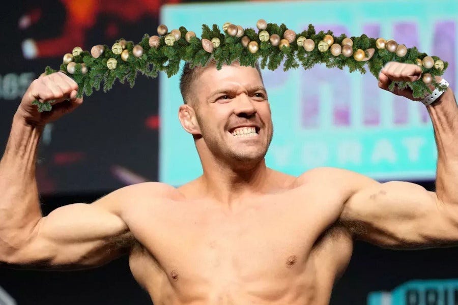 Congratulations on making it to the end of one more combat sports calendar year. The sport is winding down for its winter hibernation and December is as sleepy as ever: We've got two UFCs, one ONE (and one Invicta!), and the traditional Japanese New Year's MMA blowout, although for the first time in a few years Bellator is no longer involved because Bellator no longer exists. Enjoy a couple weeks of MMA and then take a well-deserved rest from our bullshit.