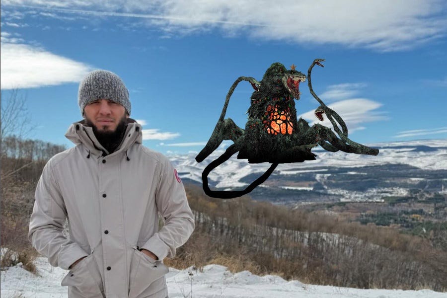 Destiny has come. When Islam Makhachev made his UFC debut in 2015, Khabib Nurmagomedov, considered by most to be the #1 contender and soon to be the best in the world, swore up and down that Makhachev, not him, would be the best lightweight champion of all time. Coming from him, the praise made sense: Khabib and Islam have trained together since they were children growing up and learning to wrestle in Makhachkala. Islam learned under Khabib's father, trained with Khabib's team and even made the pilgrimage to America to join Khabib at the American Kickboxing Academy. And then, two matches into his UFC tenure, Islam got knocked the fuck out in the first round by the little-known Adriano Martins, who hasn't won a fight in the six years since. Even as Makhachev racked up wins, the memory of his loss and his wrestling-heavy approach to his fights let people cast doubts on him. Sure, he's good--but he lost, so he's not as good as Khabib. Islam Makhachev, as his trainer tells it, never wanted to be Khabib. He loves fighting, but he doesn't love the spectacle or the glory or the attention. So when, after ten straight wins, Makhachev was picked to challenge Charles Oliveira for the vacant title he never truly lost, a lot of folks just weren't quite sure what to think. Sure, he was an incredible wrestler, but Charles Oliveira is a submission wizard, and sure, he's on a ten-fight streak, but he hasn't fought a single person actually IN the top ten, and Oliveira represents a huge, dangerous step up as a man who's been destroying some of the most accomplished lightweights in the sport's history. Analyst opinion was split right down the middle; the fight, as it turned out, was nowhere near that competitive, and the only analyst who was entirely correct was Khabib. Islam demolished the former champion, outstriking him, taking him down at will, controlling him in the grappling, and ultimately dropping him with punches and choking him out in the second round. His first defense was a different story. Islam faced featherweight champion Alexander Volkanovski at UFC 284 on February 12th in a rare best-of-the-best, champion vs champion match, and this time, his team's prediction of domination was thoroughly incorrect: It was a pitched battle that ended with Makhachev visibly exhausted and Volkanovski pounding on his face. Islam took an extremely close decision and the divisions will remain separate, but his aura of invulnerability has been thoroughly punctured. Or, at least, it was. In one of those funny moments of sport deterioration, his title defense against Charles Oliveira got scratched thanks to Oliveira busting his eyebrow in training, and on less than two weeks' notice the UFC ran Makhachev/Volkanovski 2, and with no hype, no marketing and no time to prepare, a visibly depleted Volkanovski got dropped by a headkick in the first round. Islam defended his Lightweight title against a Lightweight for the first time against Dustin Poirier at UFC 302 on June 1, and unfortunately for the dreams of many, he dominated Dustin and choked him out in the fifth round.