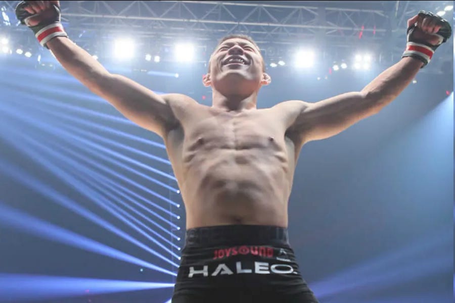 Rizin is one step closer to an all-Japanese championship roster. Naoki Inoue's route to championship gold has been oddly circuitous, and as is so often the case, a big part of that comes down to UFC management. In mid-2017, Naoki was one of Japan's star rookies, an undefeated 10-0 mixed martial artist and an amateur kickboxing champion despite being just 20 years old by a matter of days. The UFC signed him and had him debut on 2017's Asian-focused Singapore card, where he beat Carls John de Tomas despite Tomas missing weight by half a weight class, and in response to his efforts, the UFC iced him out for an entire year. They brought him back 53 weeks later--once again, for a Singapore card--and this time he lost a close coinflip of a split decision to future top ten Flyweight Matt Schnell. In response to his 1-1 record, the UFC immediately released Inoue. A year later Inoue was in Rizin and immediately became one of their best Bantamweights, but try as he might, he couldn't quite get to the top. In 2021 he was eliminated from the semifinal round of the Bantamweight Grand Prix by eventual champion Hiromasa Ougikubo; in 2023, he fell to Juan Archuleta, who would become Rizin's Bantamweight champion one fight later. But Archuleta missed weight and Kai Asakura won the belt, and six months later Asakura promptly vacated the title to sign with the UFC, leaving Rizin struggling to fill the void. They ultimately settled on a bout between Inoue and top contender Soo Chul Kim for Rizin 48 on September 29. It was not an upset that Inoue won; he, too, was very well-regarded. It was an upset that Inoue, who had scored only one knockout in twenty-three fights, punched out Kim, who had never been stopped by strikes after fourteen years of competition. Naoki's finally got his gold: Now we see how long he can keep it.