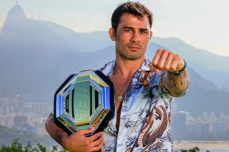 Sometimes, you just have someone's number. Brandon Moreno spent years fighting through a quadrilogy with Deiveson Figueiredo, and unfortunately for him, he had another trilogy waiting for him the second it was over. Alexandre "The Cannibal" Pantoja was Moreno's personal bogeyman, a man who'd fought and beaten him twice. But one of those fights was an exhibition on The Ultimate Fighter, and the other was against a Moreno with five less years of evolution and growth. Surely, a third fight in 2023 would be different. And it was--unlike the previous, one-sided dominations it was a fight-of-the-year candidate that took both men to their limit and led to a split decision--but its ending was not. Alexander Pantoja scored a third victory over Moreno, and with it, after sixteen years of competition, he finally became the clear, unequivocal best in the god damned world. Which was made even more poignant when he used his post-fight interview to ask if his absentee father was proud of him--and was made even more irritating when he also revealed that despite having eleven fights in the UFC at the time, he was paid so little that he'd been part-timing as a Doordash driver just to make ends meet right up until 2022. The idea that one of the absolute best fighters on the planet, after years and nearly a dozen fights in the world's biggest, most profitable fighting organization, would need to take on a gig-economy job to make money is outright offensive, and in a better world, it would have launched a furor. In this one, all we can do is be happy he's got the belt and will, hopefully, make some actual fucking money. His first title defense came against Brandon "Raw Dawg" Royval as the co-main event to UFC 296 on December 16th, and it was a wild affair with a couple scary moments, but Pantoja emerged victorious and notched the first successful defense of the title in three years. His next contender is, in all likelihood, the winner of the Brandon Moreno/Amir Albazi fight this February--or it would have been, until Albazi got injured. The UFC promoted a Moreno/Royval 2 showdown in hopes of scoring a Moreno rematch, but Royval won, so the UFC decided to forget the whole goddamn thing and book Pantoja against the #10-ranked Steve Erceg on May 4. It was a spirited fight, but Pantoja's experience ultimately got him the decision.