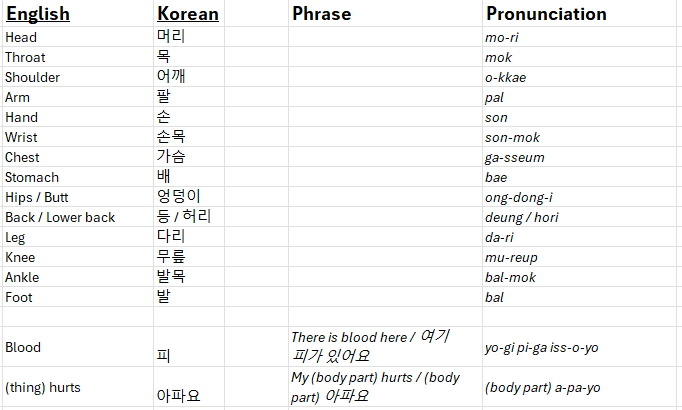 So with that primer out of the way, let’s take a look at some useful Korean phrases and words you can learn real quick to help yourself out while training.