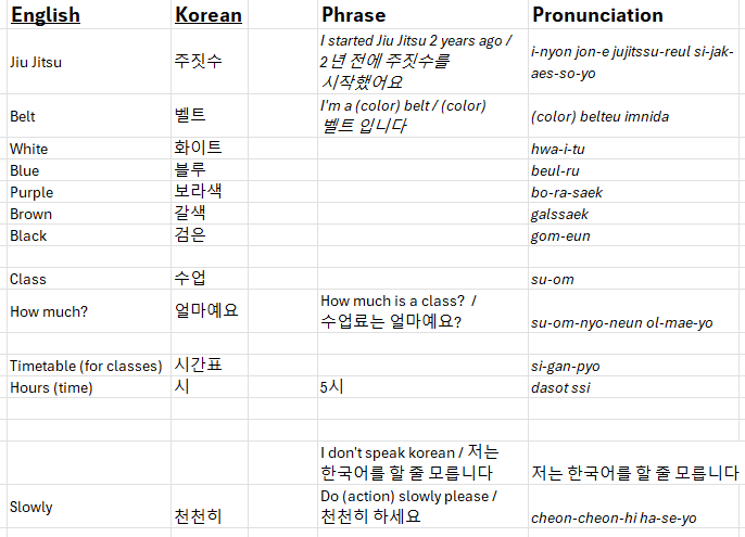 Anyway, that’s why learning some Korean is useful just to at least communicate basic ideas or thoughts. Training wise, you won’t really need to know much if you just watch what the coach is doing because, well, jiu jitsu is a fundamentally universal concept regardless of language you speak natively.